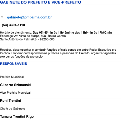 Telefones: 5433941110 - 5433941111CNPJ: 92.412.832/0001-33Email: administracao@pmpalma.com.br